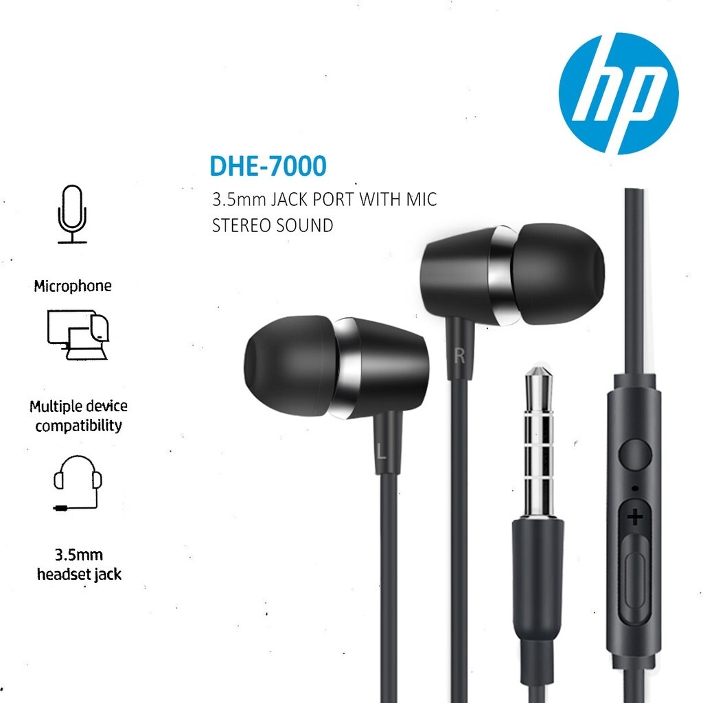 The HP DHE-7000 connects via a universal 3.5 mm jack, making it compatible with most smartphones, laptops, and tablets.