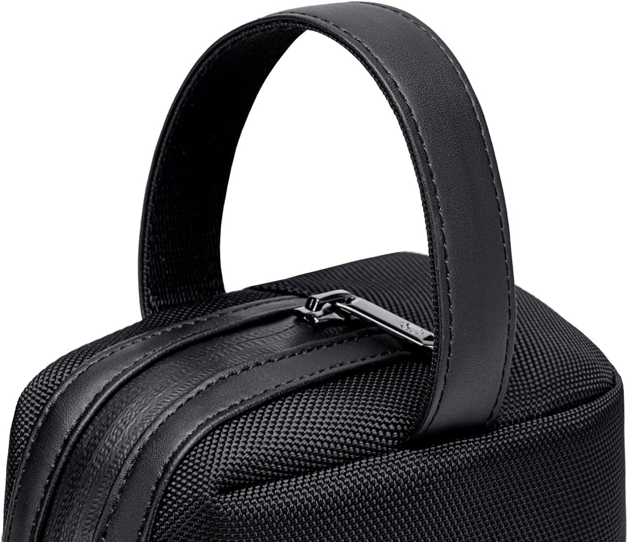 Open the wide zip to a thoughtfully arranged interior. Multiple inner slip pockets keep a phone, wallet, earbuds, and power bank separated and easy to find, while a front zip pocket provides fast access to keys or transit cards. The compact shell stays tidy on a desk yet swallows more than it looks, making it an ideal carry-all for grooming kits, cables, notebooks, or small tech.
