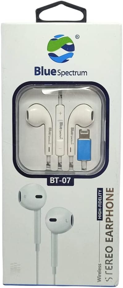 Experience superior wired sound quality with the Blue Spectrum B-07 Lightning Earphones, designed exclusively for iPhone and iPad users. These earphones deliver premium Hi-Fi stereo audio with rich bass, balanced mids, and clear highs — perfect for music, movies, and calls.
