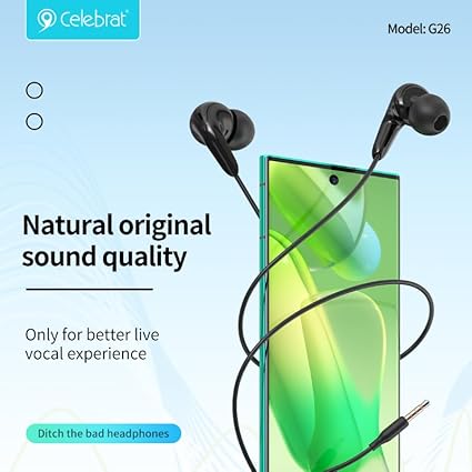 Experience premium sound with the Celebrat G26 Wired Stereo Earphones. Equipped with 10 mm large diameter drivers, they deliver Hi-Fi audio with rich bass and clear mids. The universal 3.5 mm audio jack offers wide compatibility with phones, tablets, and laptops. With a 1.2 m tangle-free TPE cable, you’ll enjoy both mobility and durability.