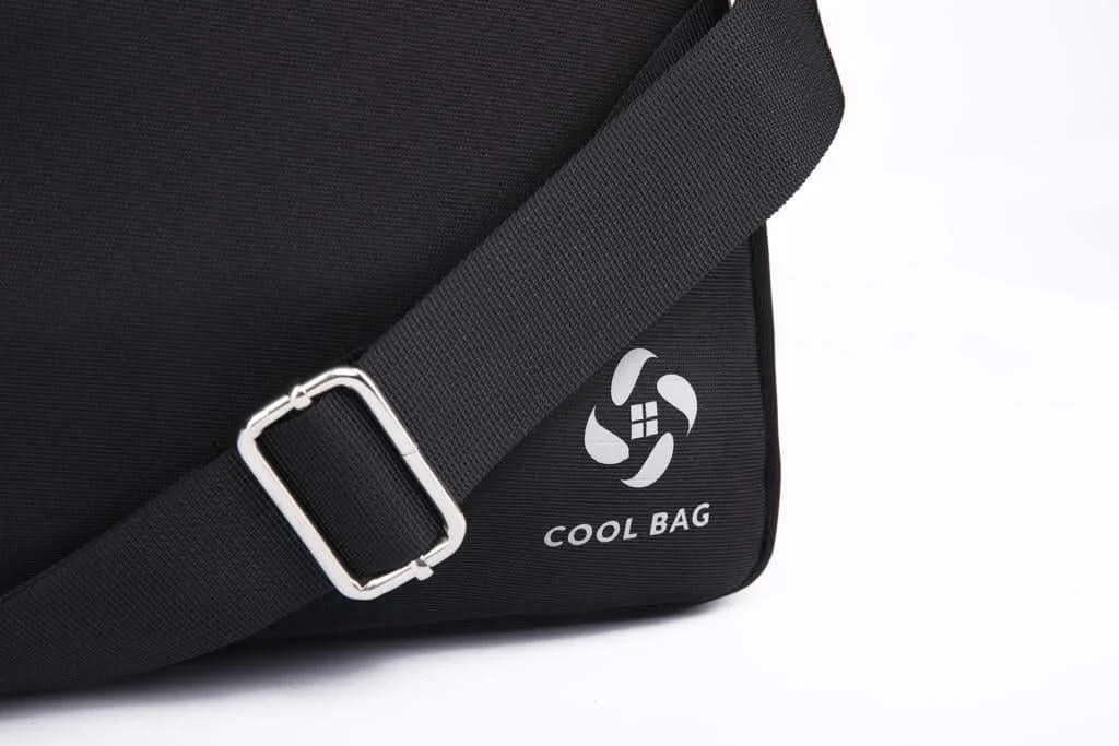Material & feel: The Cool Bag is made from a smooth textile fabric with a slightly textured surface and fine vertical lines, giving it a subtle pattern that looks modern and unisex. The overall finish stays minimalistic and elegant, so it matches any outfit or setting. The structure and padding are designed to help protect what’s inside from daily bumps and light scratches during commuting.