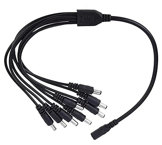 Power multiple compatible devices from a single DC adapter using this 8 in 1 DC power splitter. It’s a simple, space-saving cable harness designed to take one DC female input and distribute it into eight DC male outputs, helping you drive several low-voltage devices from one power source—cleaner wiring, fewer adapters, and easier setup management.