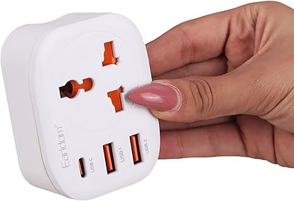 يأتي القابس بمنافذ متعددة تشمل 2 منفذ USB ومنفذ Type-C بالإضافة إلى مقبس طاقة أوروبي عالمي، ما يتيح لك شحن عدة أجهزة في وقت واحد بسهولة.