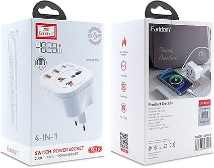 قابس الطاقة الذكي من Earldom موديل ES-SC16 هو الحل المثالي للشحن السريع والآمن في المنزل أو أثناء السفر. يتميز بتصميم أنيق وعصري مع قدرة عالية تصل إلى 4000 واط، مما يجعله مناسبًا لتشغيل الأجهزة الكبيرة أو شحن الهواتف والأجهزة اللوحية في الوقت نفسه.
