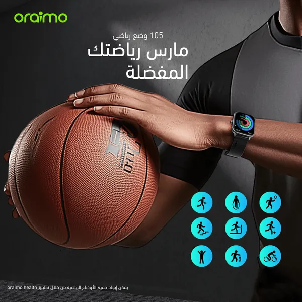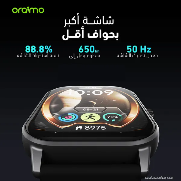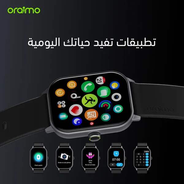 oraimo Watch 5 ساعة ذكية بشاشة 2.01 إنش HD panda glass ومقاومة للماء بمعيار