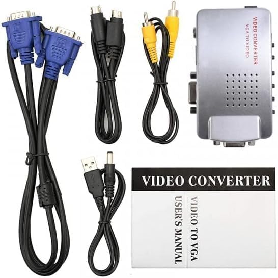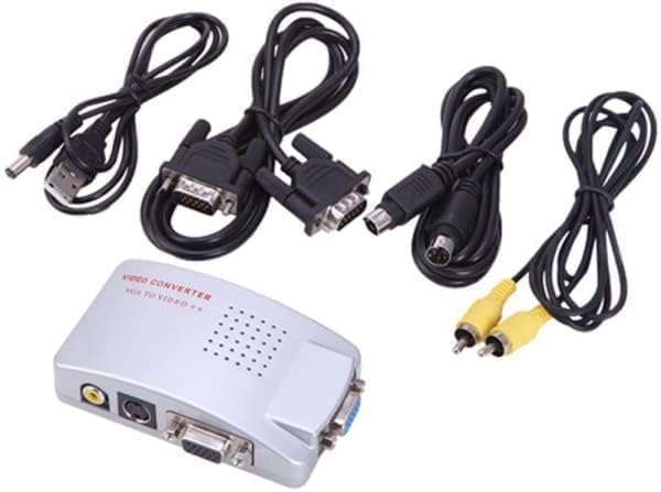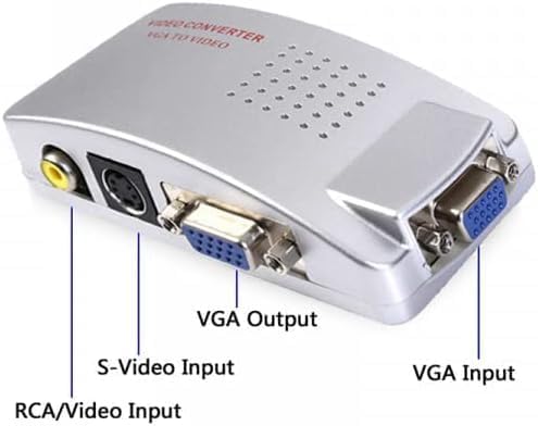 Connect older displays and AV gear with a compact Video Converter Box designed to bridge a computer’s VGA output to classic TV-style video connections. This sleek silver converter is built for home, office, and presentation use when you need a simple way to send your PC/laptop picture to a TV or display that accepts composite video (RCA) or S-Video.